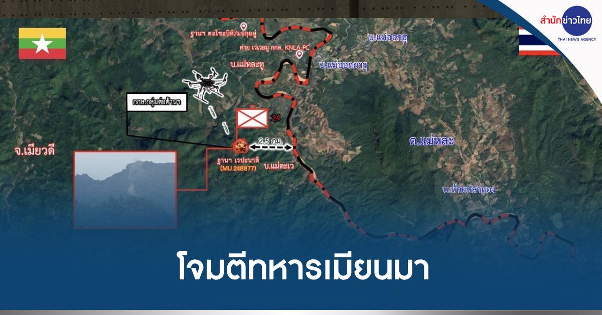 ตาก 7 พ.ค.- ชายแดนไทย-เมียนมา ด้านตรงข้าม จ.ตาก กลับมาระอุอีกครั้ง กองกำลัง KNLA ร่วมกองกำลัง KNDO โจมตีทหารเมียนมา ฐานเรปะนาดิ ผู้อพยพทะลักข้ามฝั่งเข้าไทยกว่า 100 คน