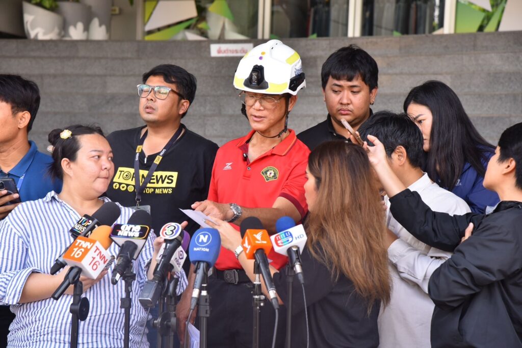 นายสุริยชัย รวิวรรณ ผู้อำนวยการสำนักป้องกันและบรรเทาสาธารณภัย กรุงเทพมหานคร (สปภ.กทม.) รายงานความคืบหน้าการค้นหาผู้ประสบภัยเหตุแผ่นดินไหว ว่า จากเมื่อวาน (7 พ.ค.68) มีจุดที่เราต้องสงสัยอยู่ 3 จุด ที่ต้องเร่งดําเนินการ จุดแรกบริเวณโซน D บริเวณด้านข้างของอาคารได้ทำการเปิดพื้นที่ออกความลึกประมาณ 50 เมตร ถึงตัวทรายถม ความยาวประมาณ 20 เมตร แต่ไม่พบร่างผู้ประสบภัย ในส่วนของโซน A ด้านหน้า ได้ทำการเปิดพื้นที่เข้าไป ซึ่งไม่พบร่างผู้ประสบภัยเช่นเดียวกัน ด้านโซน B ที่ติดกับตัวอาคารยังเปิดพื้นที่ลงไปไม่ถึงด้านล่าง เนื่องจากตัวพื้นที่ค่อนข้างจํากัด ประกอบกับด้านล่างมีเสาที่หักอยู่ 4 เสา อยู่บริเวณด้านหน้าและตัวด้านใน ทำให้เครื่องจักรหนักที่จะลงไปทำงานค่อนข้างจํากัด