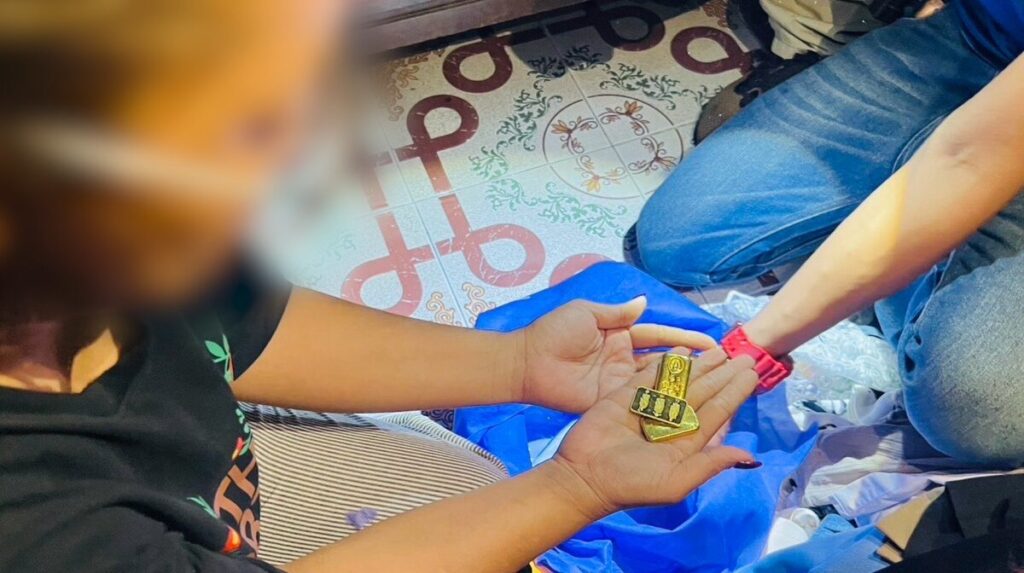 ตรวจสอบวงจรปิดพบผู้ก่อเหตุได้ถอดกล้องวงจรปิดภายในบ้านไป จึงตรวจสอบกล้องวงจรปิด ตามเส้นทางเข้าออกหมู่บ้าน พบหญิงต้องสงสัยคนหนึ่ง สวมเสื้อยืดสีเหลือง กางเกงขายาว สวมหมวก สวมแว่น เดินกางร่มเข้ามาในซอยบ้านเกิดเหตุ เมื่อตั้งแต่ช่วงเวลา 12.30 น.ของวันเกิดเหตุ ก่อนได้ขึ้นรถแท็กซี่ ออกไปจากหมู่บ้านไป เจ้าหน้าที่ตรวจสอบประวัติ มีลักษณะใกล้เคียงกับหญิงคนหนึ่ง ที่เคยถูกจับกุมคดีลักทรัพย์ ท้องที่ สภ.รัตนาธิเบศร์ เมื่อปี 63 จีงนำกำลังเข้าจับกุม พร้อมขยายผลไปตรวจสอบที่บ้านญาติของผู้ก่อเหตุ ในพื้นที่ ต.คลองพระอุดม อ.ปากเกร็ด พบทองแท่งน้ำหนัก 5 บาท 2 แท่ง หนัก 1 บาทอีก 1 แท่ง รวม 11 บาท