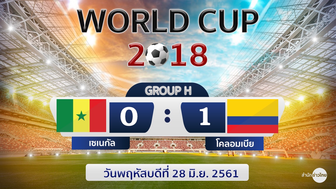 ฟุตบอลโลก รอบแบ่งกลุ่ม นัดสุดท้าย กลุ่มเอช เซเนกัล แพ้ โคลัมเบีย 0-1 โคลัมเบียเข้ารอบ 16 ทีมสุดท้าย ในฐานะแชมป์กลุ่ม รอพบรองแชมป์กลุ่มจี ระหว่าง อังกฤษ และ เบลเยียม ที่จะแข่งขันคู่ดึก เวลา 01.00 น. ส่วนเซเนัลตกรอบ