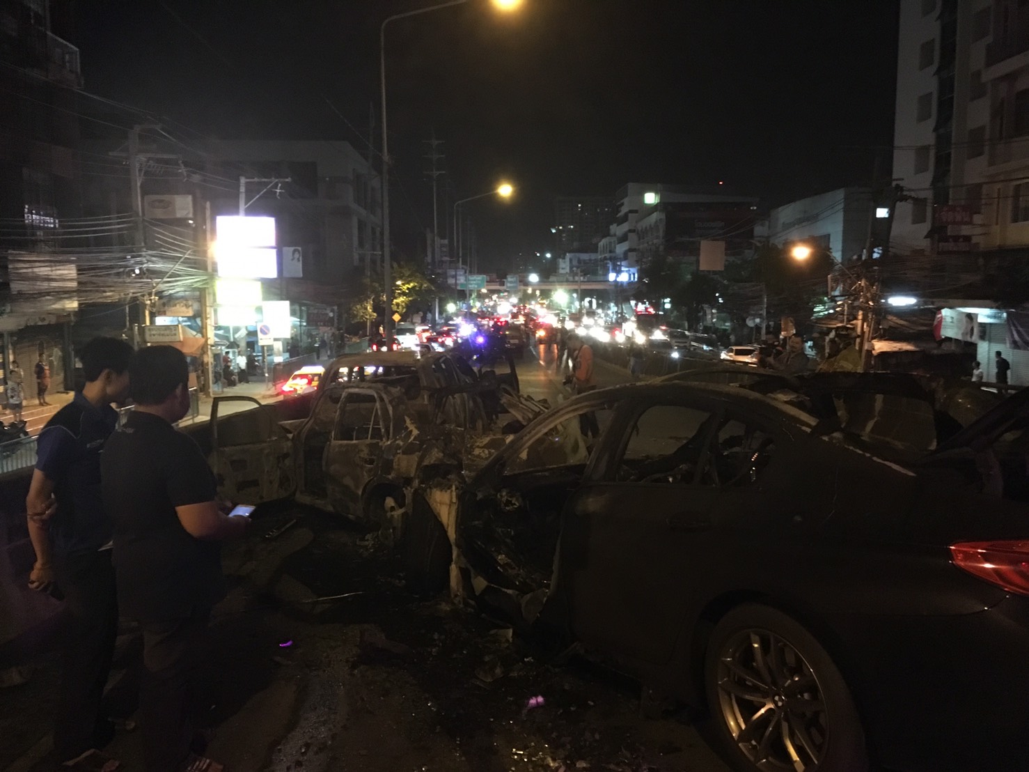 รถชนกัน 13 คันรวด บนทางยกระดับหัวหมาก ตำรวจเร่งเก็บกู้ซากรถยนต์ที่ถูกเพลิงลุกไหม้ เพื่อเปิดการจราจรให้ทันเช้าวันนี้ มีรถยนต์ไฟไหม้ 4 คัน และมีผู้ได้รับบาดเจ็บจากแรงกระแทก 4 คน ด้านคนขับรถบรรทุก 18 ล้อ เล่าว่า ขับรถบรรทุกหินมาจากนครปฐมเพื่อนำไปส่งที่ซอยรามคำแหง 117 เมื่อมาถึงช่วงทางลาดลงสะพานมีรถจักรยานยนต์ขี่มาปาดหน้า ทำให้ต้องหักหลบกะทันหันจนพุ่งชนรถตู้โดยสาร และชนกับรถคันอื่นที่จอดติดอยู่ช่วงทางลง จนเกิดเพลิงลุกไหม้รถบางคันอย่างรวดเร็ว.