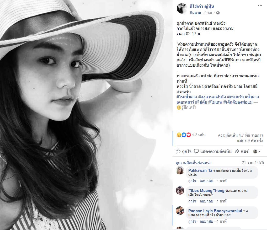 สุดยื้อ! พ่อโพสต์ “น้ำตาลเดอะสตาร์” เสียชีวิตแล้วอย่างสงบ