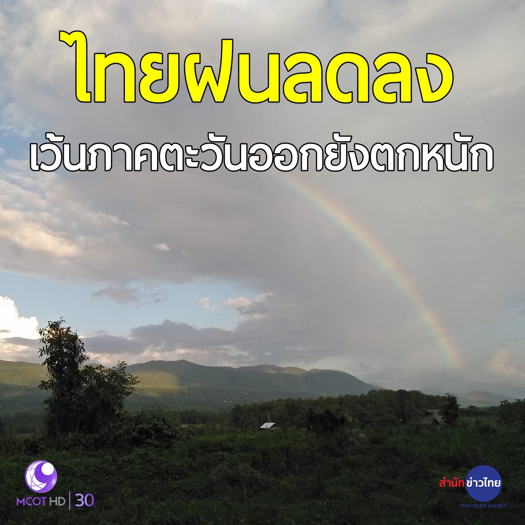 กรมอุตุฯ เผยไทยมีฝนลดลง เว้นแต่ภาคตะวันออกยังคงมีฝนตกหนักบางแห่ง กทม.ฝนฟ้าคะนอง 40% ของพื้นที่
