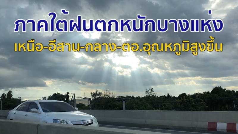 กรมอุตุฯ เผยภาคใต้ยังคงมีฝนตกหนักบางแห่ง ส่วนภาคกลาง ภาคตะวันออก ภาคเหนือ และภาคอีสาน อุณหภูมิสูงขึ้นเล็กน้อย กับมีหมอกตอนเช้า และมีฝนเล็กน้อยบางแห่ง กรุงเทพฯ และปริมณฑล ฝนฟ้าคะนอง 10%