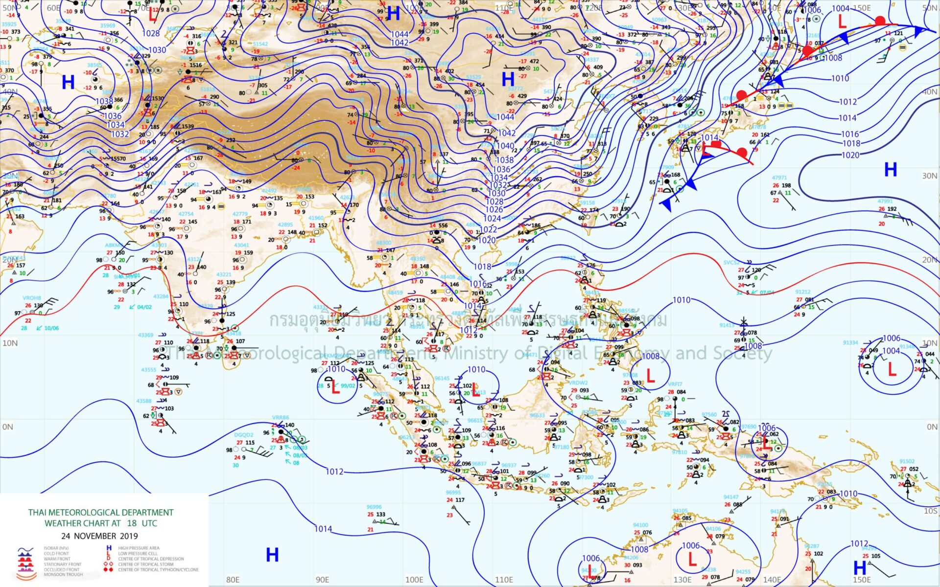 กรมอุตุฯ เตือนภาคใต้ฝนตกหนัก ระวังน้ำท่วม น้ำป่าหลาก คลื่นลมบริเวณอ่าวไทยมีกำลังแรงขึ้น ส่วนไทยตอนบนอากาศเย็นกับมีหมอกบางในตอนเช้า บริเวณพื้นราบในภาคเหนือและภาคตะวันออกเฉียงเหนือมีอุณหภูมิต่ำสุด 16-20 องศาฯ ตอนกลางวันบริเวณที่โล่งแจ้งมีแดดจัดและอากาศอุ่น ยอดดอยและยอดภูมีอากาศหนาวถึงหนาวจัด อุณหภูมิต่ำสุด 6-14 องศาฯ