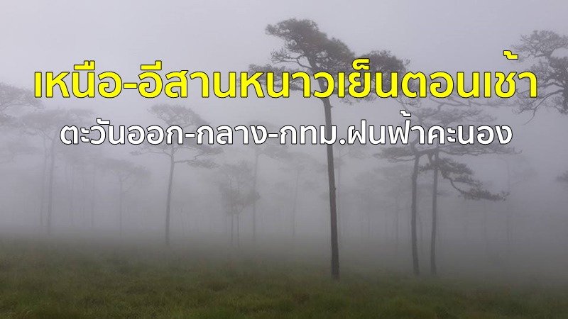 กรมอุตุฯ เผยไทยตอนบนมีหมอกตอนเช้าและหมอกหนาบางพื้นที่ กลางวันแดดจัด ภาคเหนือ-อีสาน ยังคงมีอากาศหนาวเย็นในตอนเช้า ยอดดอยหนาวจัด ขณะที่ภาคตะวันออก ภาคกลาง รวมทั้งกรุงเทพฯ และปริมณฑล มีฝนฟ้าคะนอง