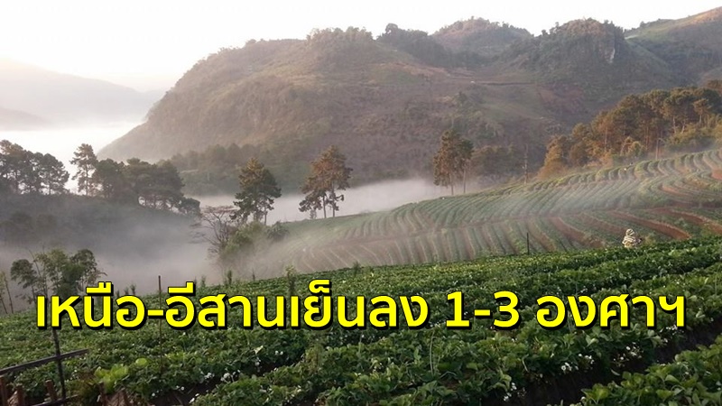 กรมอุตุฯ เผยภาคเหนือ-อีสาน อากาศเย็นถึงหนาว อุณหภูมิลดลง 1-3 องศาฯ ขณะที่ภาคใต้ตอนล่างยังมีฝนฟ้าคะนองบางพื้นที่ กทม.มีหมอกบางในตอนเช้า และยังคงมีการสะสมของฝุ่นละออง