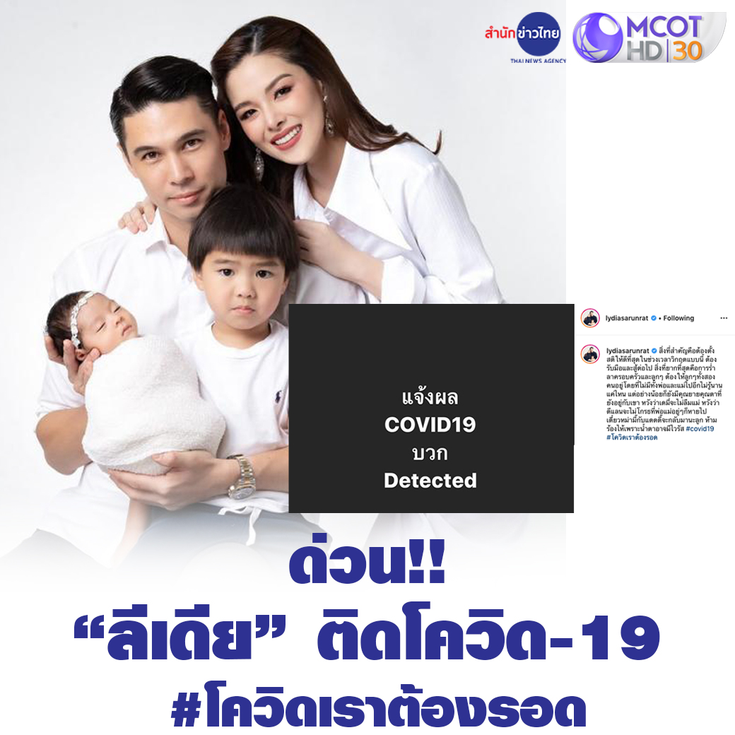 อสมท 16 มี.ค.-อินสตาแกรมนักร้องสาว ลีเดีย ศรัณย์รัชต์ แจ้งผลตรวจ Covid19 บวก Detected ห่วงลูก 2 คนอยู่โดยไม่มีพ่อแม่ บอกต้องรอด แนะ “สติ ดีที่สุด” https://www.instagram.com/p/B9x7aXYBsnM