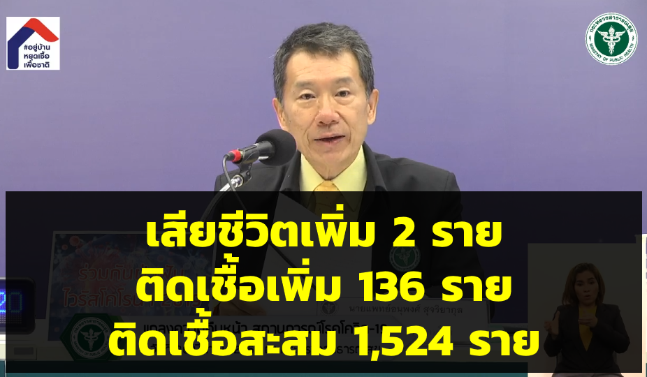 • พบผู้ป่วยรายใหม่ 136 ราย (ลำดับที่ 1,389-1,524) รวมผู้ป่วยสะสม 1,524 ราย