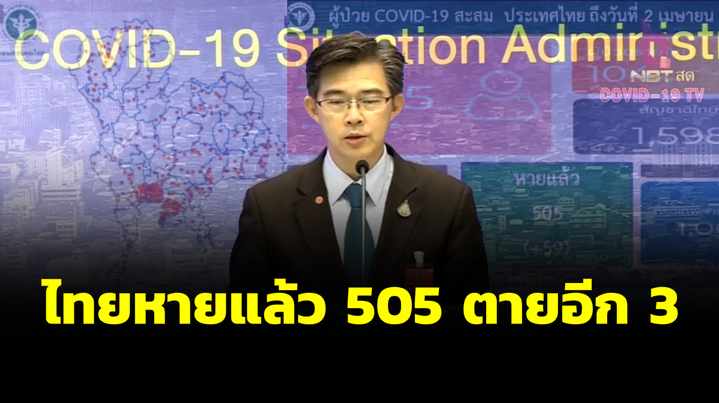 โควิด-19 ในไทย หายแล้ว 505 คน ตายเพิ่ม 3 กทม.ยอดลด