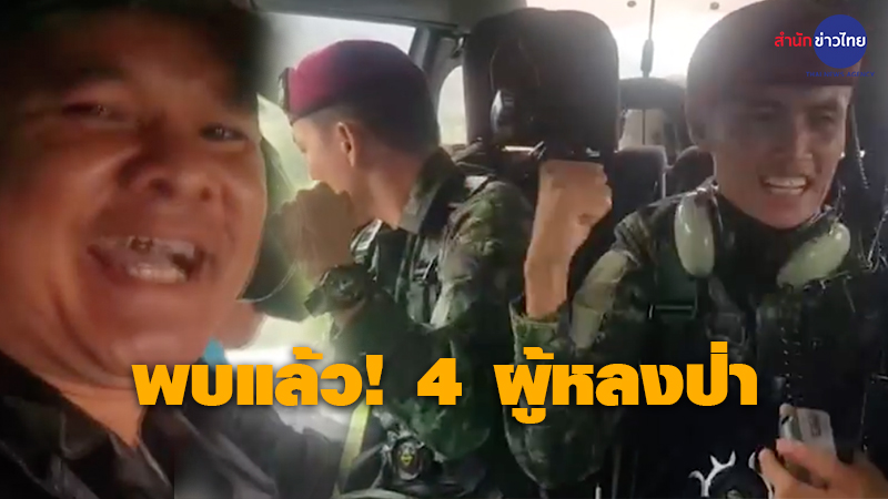 พิษณุโลก 17 พ.ค.-กองทัพภาคที่ 3 ที่ขึ้นประชาสัมพันธ์บินสำรวจในพื้นที่ป่าอุทยานแห่งชาติทุ่งแสลงหลวงได้พบผู้สูญหายทั้ง 4 รายแล้ว ปลอดภัยดีทุกคน กำลังประสานชุดโรยตัวลงไปยังจุดพบผู้หลงป่า