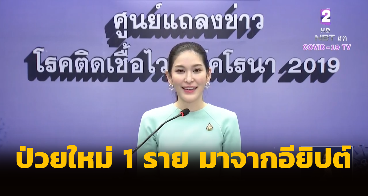 • ผู้ป่วยรายใหม่ 1 ราย มาจากอียิปต์ และเข้า State Quarantine จ.ชลบุรี