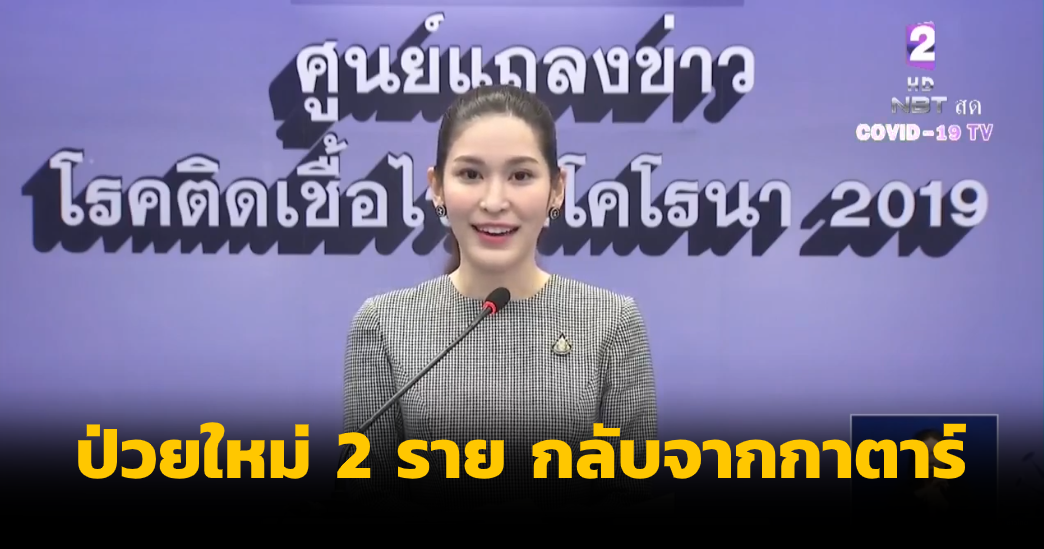 • ผู้ป่วยรายใหม่ 2 ราย มาจากกาตาร์ และเข้า State Quarantine ที่ จ.ชลบุรี