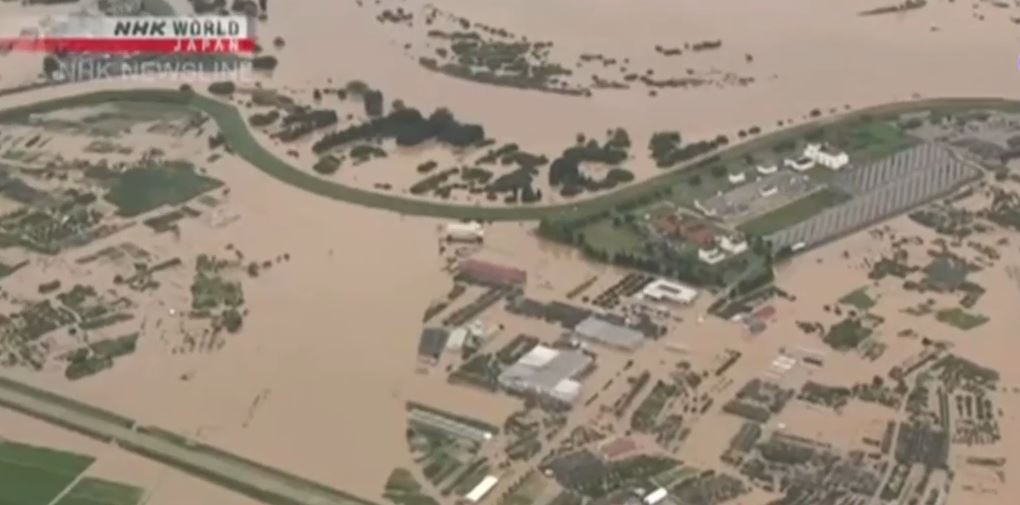 เจ้าหน้าที่เตือนประชาชนที่อาศัยอยู่ในจังหวัดยามากาตะ ทางภาคตะวันออกเฉียงเหนือของญี่ปุ่น ระมัดระวังอันตรายและเตรียมพร้อมอพยพออกจากบ้านเรือน หลังพายุฝนที่โหมกระหน่ำลงมาอย่างหนัก ส่งผลให้น้ำในแม่น้ำโมกามิเอ่อล้นออกมาท่วมบ้านเรือน