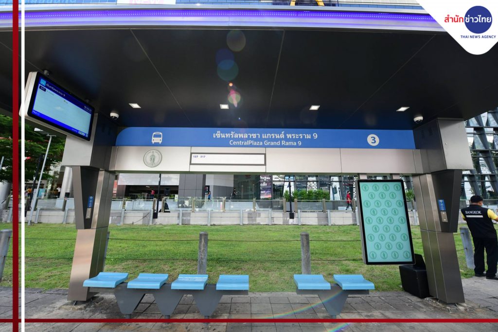 กทม. 30 ก.ค.- กทม.เปิดตัวป้ายรถเมล์โฉมใหม่ให้ เช็ก ชาร์จ แชร์ ฟรี รองรับวิถีชีวิตคนกรุง นำร่องแห่งแรกบริเวณเซ็นทรัลฯ แกรนด์ พระราม 9