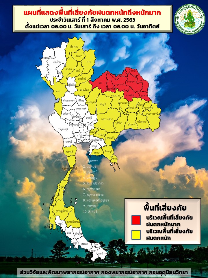 กรมอุตุฯ 1 ส.ค. – กรมอุตุฯ เตือนพายุดีเปรสชันบริเวณทะเลจีนใต้ตอนบน ส่งผลให้ไทยมีฝนตกหนักถึงหนักมากบางแห่ง ช่วงวันที่ 1-4 ส.ค.นี้