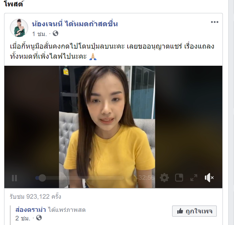 อย่างไรก็ตามหลังจบไลฟ์ไม่นานโพสต์ถูกลบไป ก่อนเจ้าตัวจะโพสต์ใหม่บอกว่า “มือลั่น”.-สำนักข่าวไทย