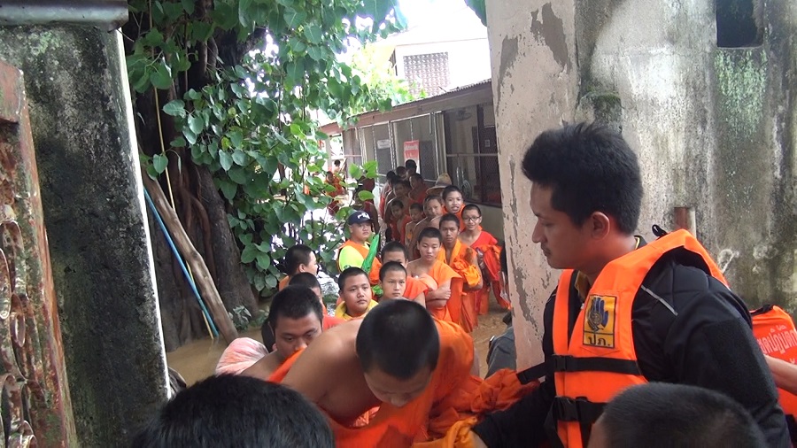 ลำปาง 3 ส.ค.- น้ำป่าดอยหลวงยังไหลบ่าลงสู่แม่น้ำวังจนพิกัดท่วมบ้านเรือนริมฝั่งอำเภอวังเหนือ จ.ลำปาง เกือบ 1 เมตร รวมทั้งที่ทำการเทศบาล-อบต. และวัด เจ้าหน้าที่เร่งช่วยพระ-สามเณร กว่า 80 รูป มาอยู่ในจุดปลอดภัย