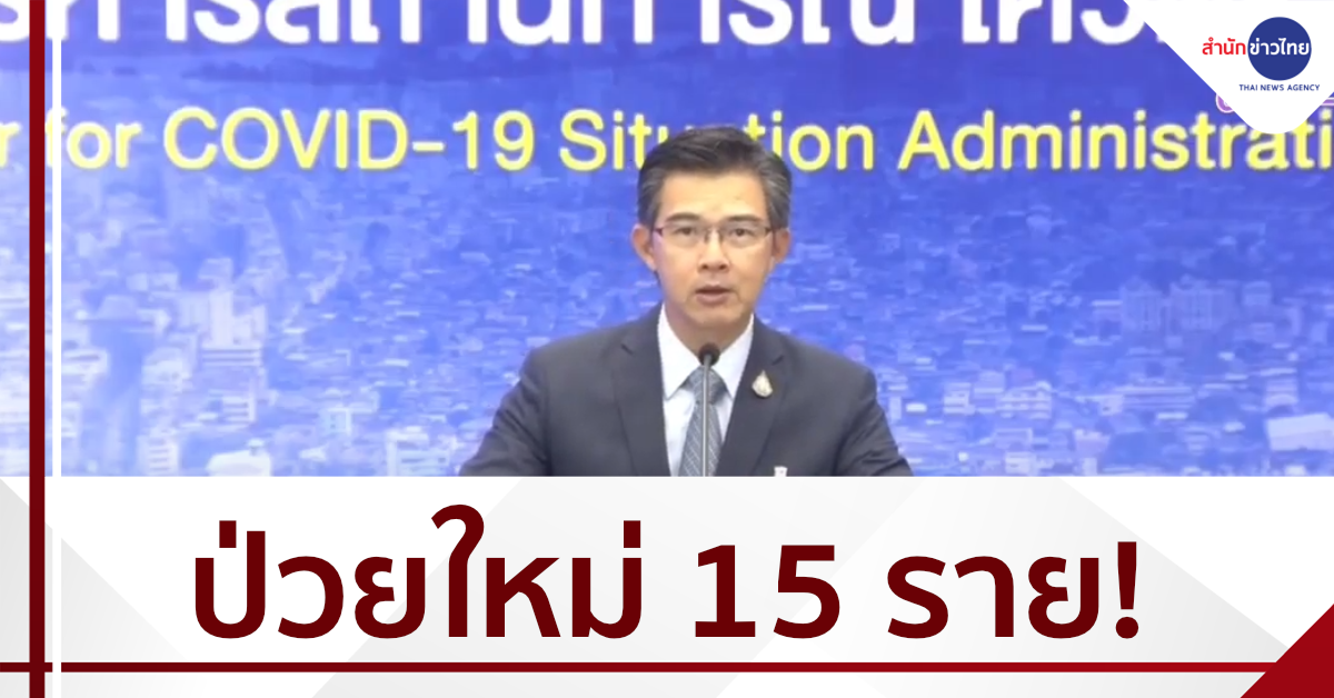 ผู้ป่วยรายใหม่ 15 ราย เป็นคนไทยเดินทางมาจากต่างประเทศ เข้าพัก State Quarantine