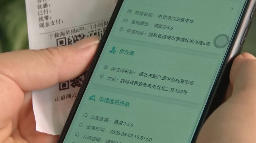 เป็นภาพคุ้นตาเวลาไปจ่ายตลาดที่ตลาดสดในนครซีอาน มณฑลส่านซี ของจีน ที่บนฉลากและใบเสร็จรับเงินของผักและเนื้อสัตว์จะมีคิวอาร์โค้ด (QR Code) แปะอยู่ ซึ่งเป็นโค้ดเพื่อติดตามแหล่งที่มาของผักและเนื้อสัตว์ที่วางจำหน่ายในตลาด คิวอาร์โค้ดดังกล่าวเปรียบได้กับ “บัตรประชาชน” ของสินค้าอาหาร เมื่อประชาชนใช้โทรศัพท์มือถือสแกนโค้ด ก็จะสามารถสืบหาข้อมูลต่างๆ ทั้งชนิดของผักที่ซื้อ ชื่อเรียกของส่วนต่างๆ ของเนื้อที่ซื้อ รวมถึงขั้นตอนการขนส่ง ซัพพลายเออร์ เป็นต้น