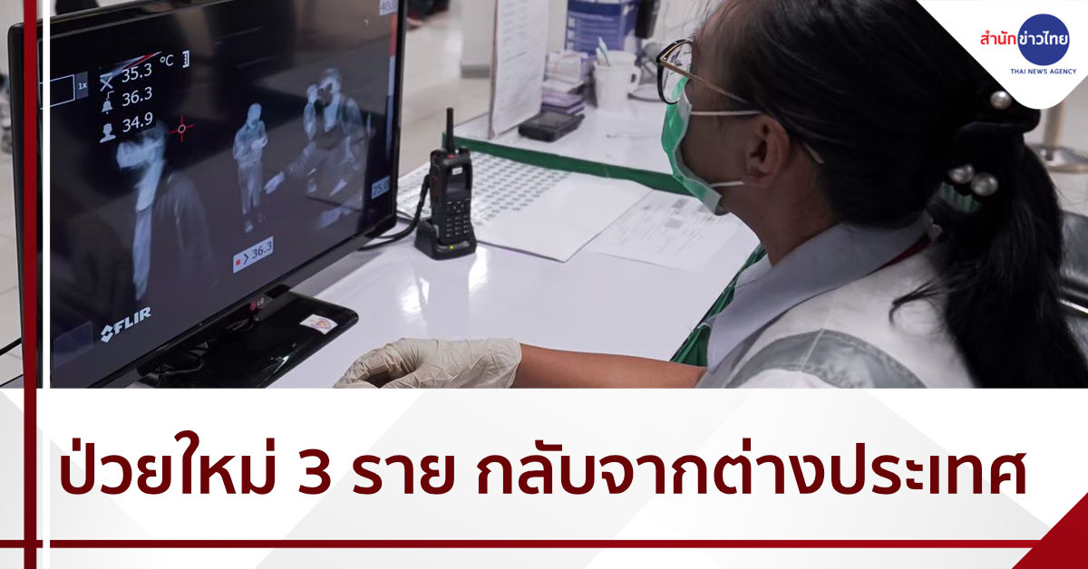 - ผู้ป่วยรายใหม่ 3 ราย เป็นคนไทยเดินทางมาจากต่างประเทศ เข้าพัก State Quarantine