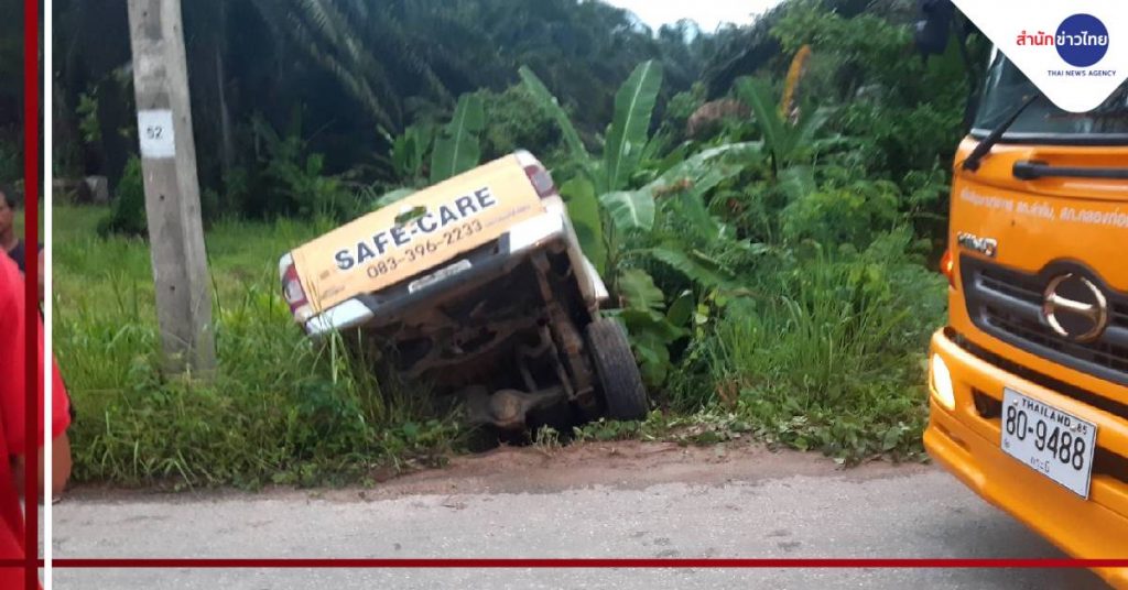 วันที่ 9 ส.ค.63 เจ้าหน้าหน่วยที่กู้ภัยอัมรินทร์ใต้ จ.กระบี่ นำรถโฟร์วีลลากรถยนต์กระบะอีซูซุ ตอนครึ่งสีบรอนซ์ ทะเบียน บท 3723 ภูเก็ต ขึ้นจากคูระบายน้ำลึกประมาณ 3 เมตร ฝั่งตรงข้ามหน้าร้านค้าติดกับลานเทจรรยาปาล์ม ม.6 ต.พรุดินนา อ.คลองท่อม จ.กระบี่ หลังรถยนต์กระบะคันดังกล่าวมาจอดที่หน้าร้าน โดยมีเด็กหญิงและเด็กชายอายุประมาณ 6- 7ขวบ นั่งอยู่ในรถ จู่ๆ รถเกิดไหลข้ามถนนพุ่งตกลงไปในคูระบายน้ำ ไฟหน้ารถด้านซ้ายพังเสียหาย ส่วนเด็กๆ ที่อยู่ในรถปลอดภัย ไม่มีใครได้รับบาดเจ็บ