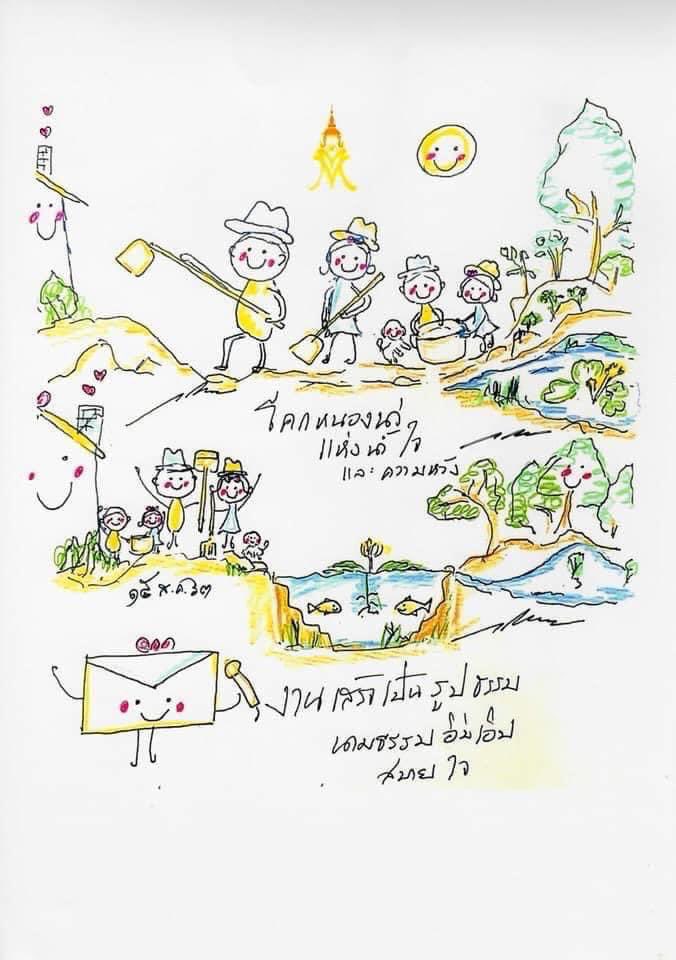 22 ส.ค.-พระบาทสมเด็จพระเจ้าอยู่หัว พระราชทานพระบรมราชานุญาตให้เผยแพร่ภาพวาดฝีพระหัตถ์ “โคกหนองนาแห่งน้ำใจและความหวัง” โดยภาพวาดฝีพระหัตถ์แบ่งเป็น 3 แบบ ประกอบด้วย