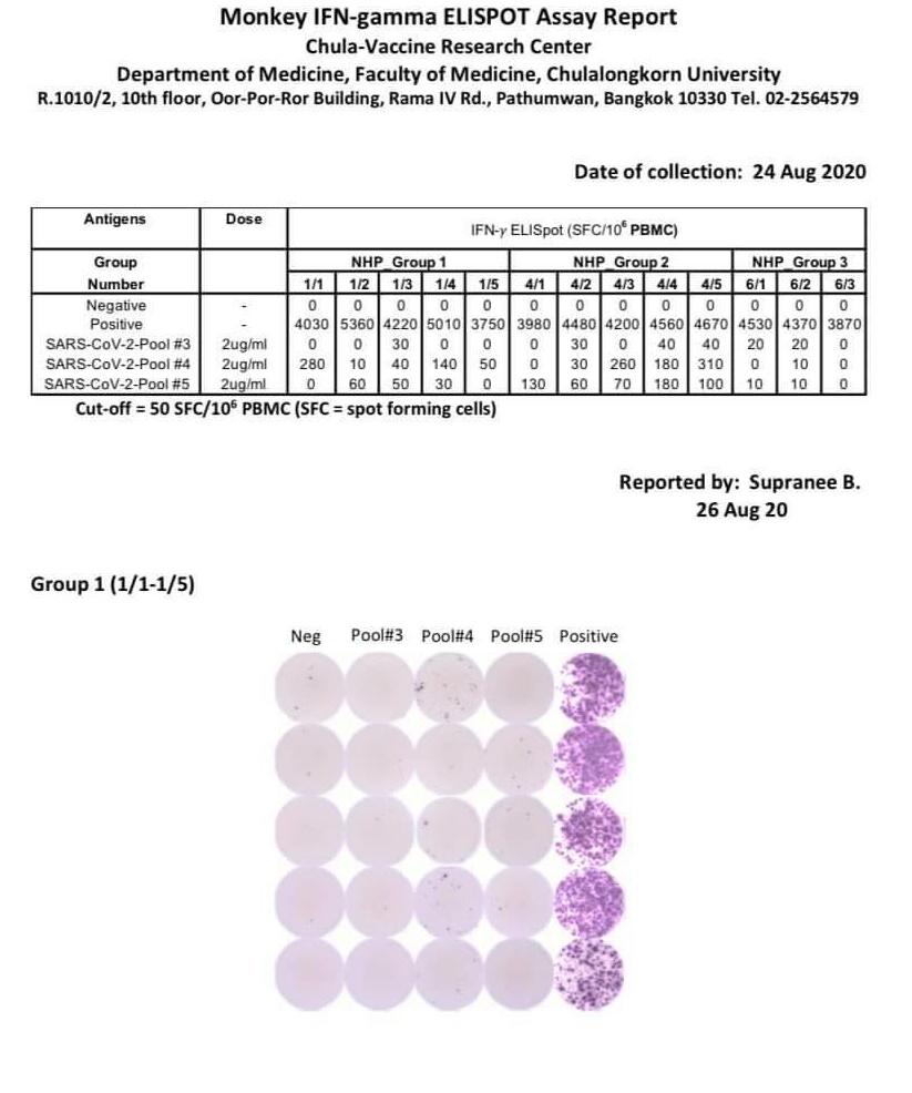 นอกจากนั้น เซลล์ของลิงจากการกระตุ้นด้วยเปปไทด์พบว่ามี ค่าการสร้าง IFN gamma แสดงว่ามีกระตุ้น T cell ได้