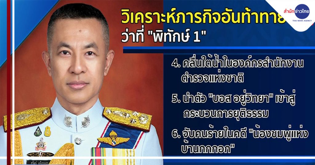 กรุงเทพฯ 29 ส.ค.- วันที่ 1 ตุลาคมนี้ “บิ๊กปั๊ด” พล.ต.อ.สุวัฒน์ แจ้งยอดสุข จะเริ่มปฏิบัติภารกิจในตำแหน่งผู้บัญชาการตำรวจแห่งชาติอย่างเต็มตัว เมื่อวิเคราะห์สถานการณ์ของประเทศและภาพลักษณ์องค์กรตำรวจขณะนี้ เชื่อว่าเป็นงานหินที่รอท้าทายความสามารถของ “พล.ต.อ.สุวัฒน์” อย่างแน่นอน