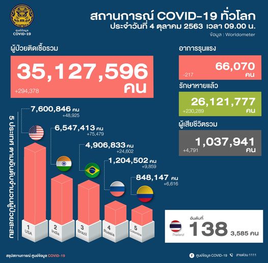 ยอดผู้ติดเชื้อรวม 35,127,596 ราย