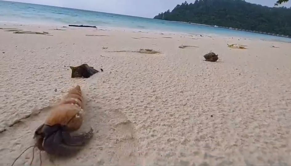 กระบี่ 4 พ.ย. – หน.อุทยานแห่งชาติหมู่เกาะลันตา จ.กระบี่ เผยปูเสฉวนอาศัยขวดเครื่องดื่มชูกำลังที่เกาะรอก ส่งปริมาณปูเสฉวนเพิ่มจำนวนมากขึ้น ขณะที่เปลือกหอยตามธรรมชาติมีปริมาณไม่เพียงพอ พร้อมเปิดรับบริจาคเปลือกหอยฝาเดียว เพื่อคืนบ้านให้ปูเสฉวน ฝากนักท่องเที่ยวช่วยดูแล ไม่ทิ้งขยะลงทะเล