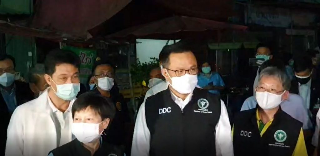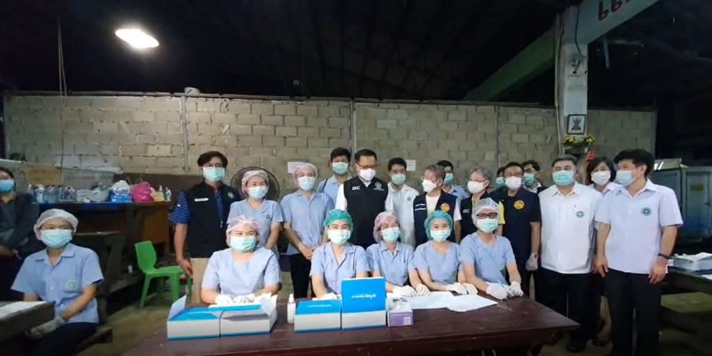 ทั้งนี้ กระทรวงสาธารณสุขได้ส่งรถเก็บตัวอย่างชีวนิรภัยพระราชทานลงพื้นที่ตลาดกลางกุ้ง