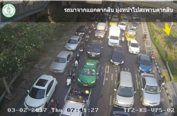 กทม. 2 มี.ค.- fm91trafficpro และ TRS995radio รายงานการจราจรเช้าวันพฤหัสบดี ถนนกรุงธนบุรี มุ่งหน้า สะพานสมเด็จพระเจ้าตากสิน รถมาก