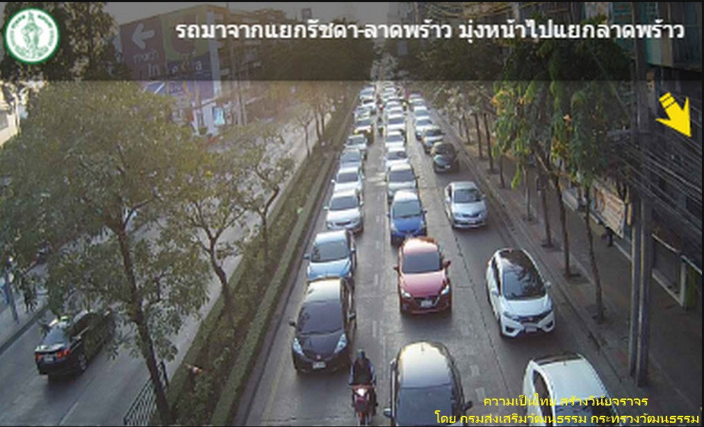 สภาพการจราจร ถนนลาดพร้าว ขาเข้า จากแยกรัชดา-ลาดพร้าว มุ่งหน้าปากทางลาดพร้าว ปริมาณรถมาก ขยับตามกันได้ช้า