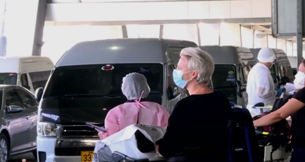 ส่วนบรรยากาศบริเวณจุดนัดพบระหว่างผู้โดยสารและโรงแรมสถานที่กักตัวทางเลือก Alternative Quarantine บริเวณอาคารผู้โดยสารชั้นสอง ขาเข้า มีผู้โดยสารทั้งชาวต่างชาติและชาวไทยที่ผ่านการตรวจตามมาตรการกระทรวงสาธารณสุข มารอเดินทางออกไปยังโรงแรมที่พักอย่างต่อเนื่อง