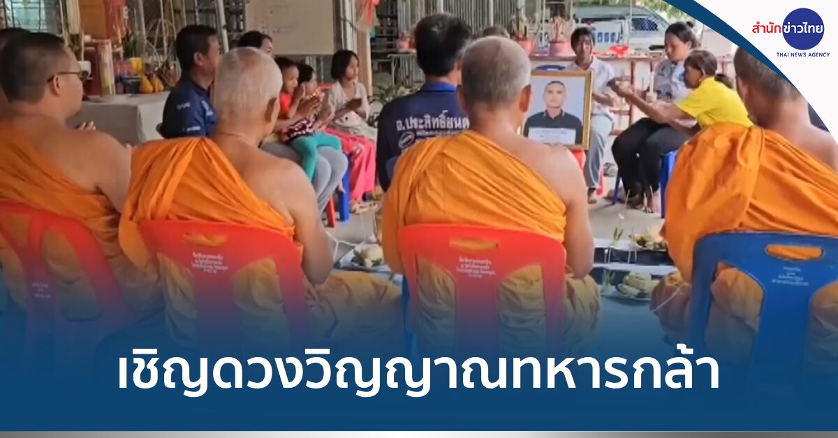 30 ส.ค. – ครอบครัวสิบตรีธีรยุทธ ทหารกล้าชาวบุรีรัมย์ ที่เสียชีวิตในสนามรบจากเหตุปะทะไทย-กัมพูชา นิมนต์พระมาทำพิธีเชิญดวงวิญญาณกลับบ้านตามความเชื่อ หลังเข้าฝันแม่ บอกว่ายังอยู่ในจุดเกิดเหตุกลับบ้านไม่ได้