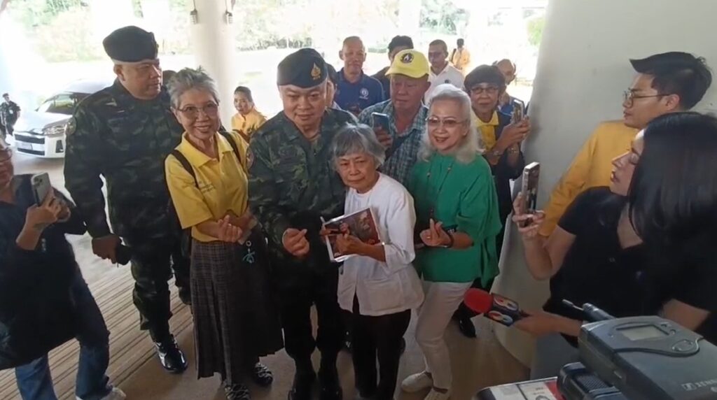 ช่วงบ่ายวันนี้ (15 ก.ย.) พล.ท.บุญสิน พาดกลาง แม่ทัพภาคที่ 2 พร้อม พล.ต.วินธัย สุวารี โฆษกกองทัพบก ร่วมบรรยายพิเศษ บอกเล่า “เรื่องจริงจากชายแดน” ที่หอประชุมทีปังกรรัศมีโชติ มหาวิทยาลัยราชภัฏเชียงใหม่ ศูนย์แม่ริม อ.แม่ริม จ.เชียงใหม่ มีนักเรียน นักศึกษา ประชาชนชาวเชียงใหม่ และนักศึกษาวิชาทหาร กว่า 2,000 คน รอให้การต้อนรับอย่างอบอุ่น โดยแม่ทัพภาคที่ 2 ได้พูดคุยกับคุณยายที่มารอต้อนรับ พร้อมสวมกอดคุณยายอย่างเป็นกันเอง และยังมอบลายเซ็นลงบนรูปถ่ายของตนที่คุณยายเตรียมมาด้วย
