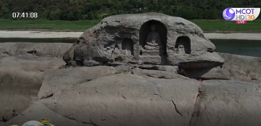 จีน 22 ส.ค. – ระดับน้ำในแม่น้ำทั้งในจีนและยุโรป ลดลงอย่างรวดเร็วจากภัยแล้งและอากาศร้อนจัดต่อเนื่อง จนมองเห็นพระพุทธรูปเก่าแก่อายุ 600 ปีที่เคยจมใต้น้ำ และเรือรบสมัยสงครามโลกโผล่ขึ้นมา