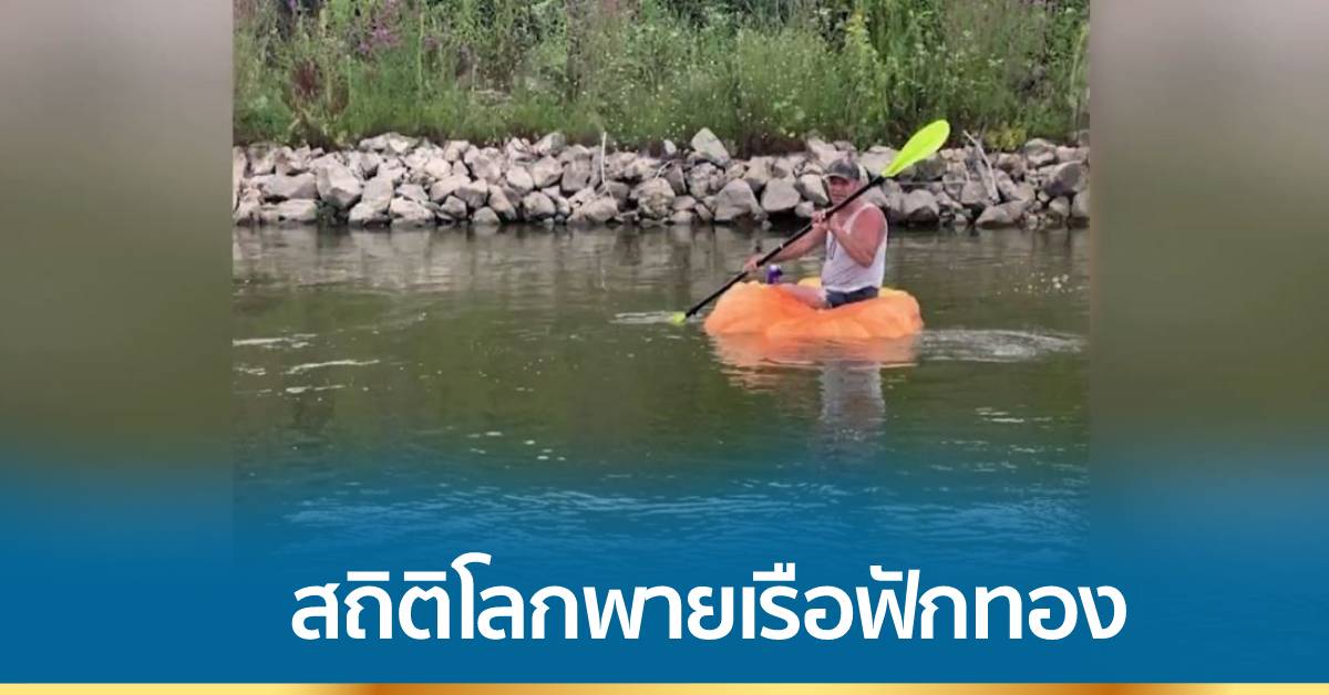 สหรัฐ 29 ส.ค.- ชายชาวอเมริกันสร้างสถิติโลก ด้วยการพายเรือฟักทองยักษ์เป็นระยะทางถึง 61 กิโลเมตร ซึ่งต้องใช้เวลาพายถึง 11 ชั่วโมง โดยไม่มีการหยุดพัก