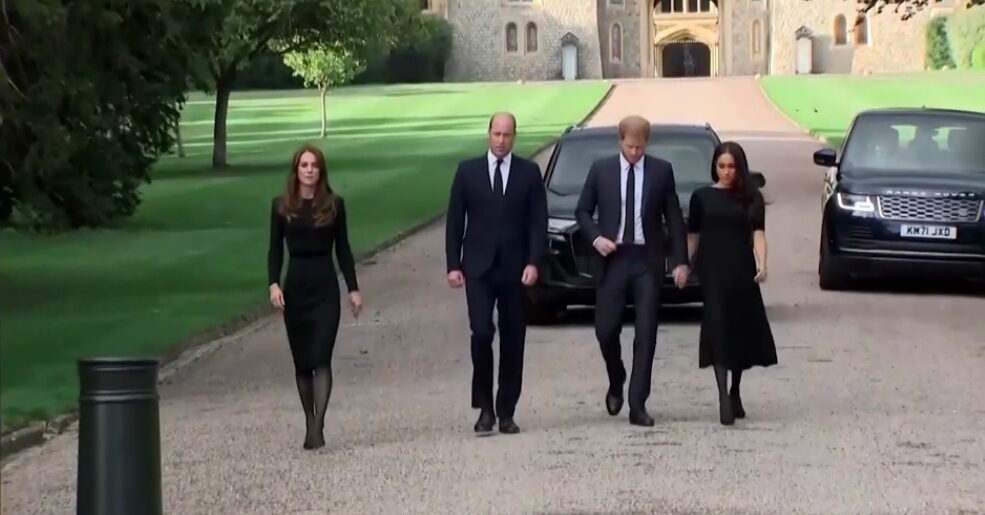 เจ้าชายวิลเลียมและเจ้าชายแฮร์รี พระโอรสของสมเด็จพระเจ้าชาร์ลส์ที่ 3 ที่เคยสนิทสนมกันอย่างมากนับตั้งแต่สูญเสียพระมารดา คือ เจ้าหญิงไดอานา จากอุบัติเหตุทางรถยนต์ในกรุงปารีสของฝรั่งเศส เมื่อปี 1997 แต่ทั้งสองพระองค์เกิดหมางเมิน หลังจากเจ้าชายแฮรีและเมแกน พระชายา ยกเลิกการใช้พระยศและยกเลิกการปฏิบัติหน้าที่ในฐานะเชื้อพระวงศ์ชั้นสูงและย้ายไปอยู่ในสหรัฐ การที่เจ้าชายวิลเลียม เจ้าชายแห่งเวลส์ มกุฎราชกุมารแห่งสหราชอาณาจักร และแคทเธอรีน เจ้าหญิงแห่งเวลส์ พระวรชายา เสด็จพระราชดำเนินพร้อมด้วย เจ้าฟ้าชายแฮร์รี่ และเมแกน ดยุคและดัชเชสแห่งซัสเซกส์ พระชายา ทรงทักทายและมีพระราชปฏิสันถารกับประชาชนที่ร่วมกันถวายความอาลัยต่อการสวรรคตของสมเด็จพระราชินีนาถเอลิซาเบธที่ 2 แห่งสหราชอาณาจักร ณ บริเวณหน้าพระราชวังวินด์เซอร์ มณฑลเบิร์กเชียร์ถือเป็นภาพเหตุการณ์ที่หาชมได้ยากยิ่ง แหล่งข่าวจากราชสำนักกล่าวว่า ภาพที่เจ้าชายทั้งสองพระองค์ พร้อมพระชายา ออกมาจากรถพระที่นั่งคันเดียวกัน และทักทายประชาชนร่วมกัน โดยใช้เวลาประมาณ 40 นาที แสดงให้เห็นถึงความเป็นอันหนึ่งอันเดียวกันในช่วงเวลาที่เศร้าโศกแบบนี้.-สำนักข่าวไทย