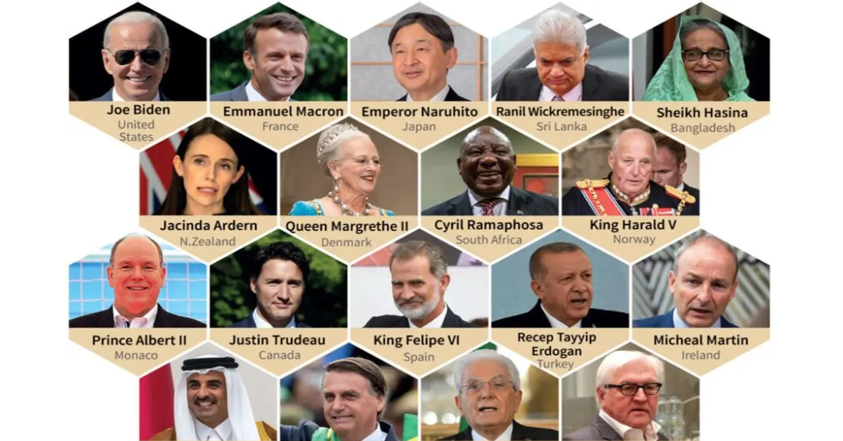 ผู้นำจากทั่วโลกที่ตอบรับคำเชิญเข้าร่วมพระราชพิธีพระบรมศพ ได้แก่ ประธานาธิบดีโจ ไบเดน และนางจิล ไบเดน สุภาพสตรีหมายเลขหนึ่งของสหรัฐ ประธานาธิบดีเอ็มมานูเอล มาครง ของฝรั่งเศส ประธานาธิบดีราเจพ ทายยิพ แอร์โดอาน ของตุรกี ประธานาธิบดีจาอีร์ โบลโซนารู ของบราซิล นางเออร์ซูลา ฟอน เดอ เลเยน ประธานคณะกรรมาธิการแห่งสหภาพยุโรป หรืออียู ประธานาธิบดีเซอร์จิโอ มัตตาเรลลา ของอิตาลี ประธานาธิบดีฟรังค์-วัลเทอร์ ชไตน์ไมเออร์ ของเยอรมนี ประธานาธิบดีไอแซก เฮอร์ซอก ของอิสราเอล และประธานาธิบดียุน ซอก-ยอล ของเกาหลีใต้ รวมถึงนายกรัฐมนตรีไมเคิล มาร์ติน ของไอร์แลนด์