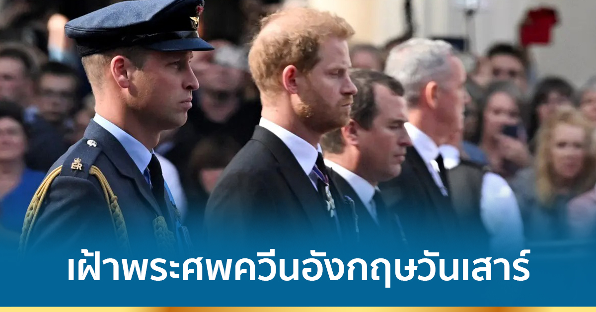 โฆษกของสำนักพระราชวังเคนซิงตันของอังกฤษเผยวันนี้ว่า พระราชนัดดา 8 พระองค์ในสมเด็จพระราชินีนาถเอลิซาเบธที่ 2 ซึ่งรวมถึงเจ้าชายวิลเลียม เจ้าชายแห่งเวลส์ และเจ้าชายแฮร์รี ดยุกแห่งซัสเซกส์ จะเสด็จฯ เฝ้าพระบรมศพสมเด็จพระราชินีนาถเอลิซาเบธที่ 2 เป็นเวลา 15 นาทีในช่วงค่ำวันเสาร์ เจ้าชายวิลเลียมจะทรงยืนอยู่ที่ตำแหน่งพระเศียร และเจ้าชายแฮร์รีจะทรงยืนอยู่ที่ตำแหน่งพระบาทของสมเด็จพระราชินีนาถเอลิซาเบธที่ 2 โดยที่ทั้งสองพระองค์จะทรงสวมเครื่องแบบเต็มยศตามพระราชประสงค์ของสมเด็จพระเจ้าชาร์ลส์ที่ 3 แต่เคท เจ้าหญิงแห่งเวลส์และพระชายาของเจ้าชายวิลเลียม และเมแกน ดัชเชสแห่งซัสเซกส์และพระชายาของเจ้าชายแฮร์รี ทรงไม่ได้เข้าร่วมพิธีดังกล่าว.-สำนักข่าวไทย