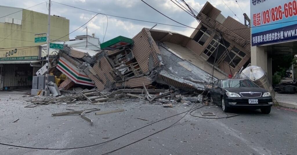 คลิปที่เผยแพร่ใน เฟซบุ๊กชุมชนเปาเฟย เห็นอาคารพังถล่มในเทศมณฑลฮวาเหลียน ทางตะวันออกของไต้หวัน เป็นอาคาร 3 ชั้นที่มีร้านสะดวกซื้ออยู่ชั้นล่าง สำนักข่าวซีเอ็นเอ (CNA) รายงานว่า เสมียนของร้านพังกระจกออกมาได้ แต่ลูกค้า 4 คน ยังคงติดอยู่ข้างใน นอกจากนี้ยังมีคลิปสะพานเกาเหลียวขาดเสียหายอย่างหนัก ได้ยินเสียงคนถ่ายคลิปแสดงความเป็นห่วงคนในยวดยานที่แล่นบนสะพานขณะเกิดแผ่นดินไหว
