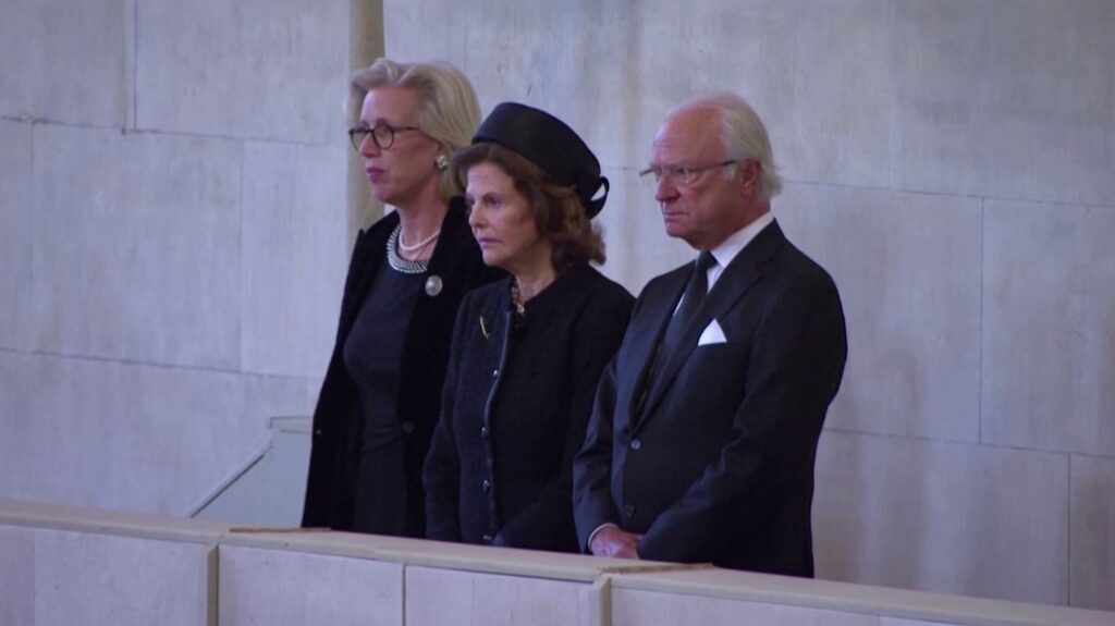 กษัตริย์เฟลิเปที่ 6 แห่งสเปน และกษัตริย์ คาร์ลที่ 16 แห่งสวีเดน เสด็จฯ เข้าถวายสักการะพระบรมศพสมเด็จพระราชินีนาถ เอลิซาเบธที่2 ที่ประดิษฐาน ณ เวสต์มินสเตอร์ ฮอลล์ ในกรุงลอนดอน เช่นเดียวกับผู้นำโลกคนอื่นๆ ทยอยเดินทางเข้าถวายสักการพระบรมศพ ไม่ว่าจะเป็นประธานาธิบดีโจ ไบเดน พร้อมด้วย จิลล์ ไบเดน สตรีหมายเลขหนึ่ง ที่เดินทางเข้าถวายสักการะพระบรมศพ และลงนามในสมุดถวายอาลัยต่อการเสด็จสวรรคต ถือเป็นหนึ่งในผู้นำสหรัฐ 14 คน ที่ดำรงตำแหน่งตลอดช่วงการครองราชย์ 70 ปี ของสมเด็จพระราชินีนาถเอลิซาเบธที่ 2 รวมทั้งนายกรัฐมนตรีจัสติน ทรูโด ของแคนาดา, ประธานาธิบดีเอมมานูเอล มาครง ของฝรั่งเศส, สมเด็จพระจักรพรรดินารุฮิโตะ และสมเด็จพระจักรรพรรดินีมิชิโกะแห่งญี่ปุ่น รวมถึงสมเด็จพระราชาธิบดีจิกมี เคเซอร์ นัมเกล วังชุก แห่งภูฏาน