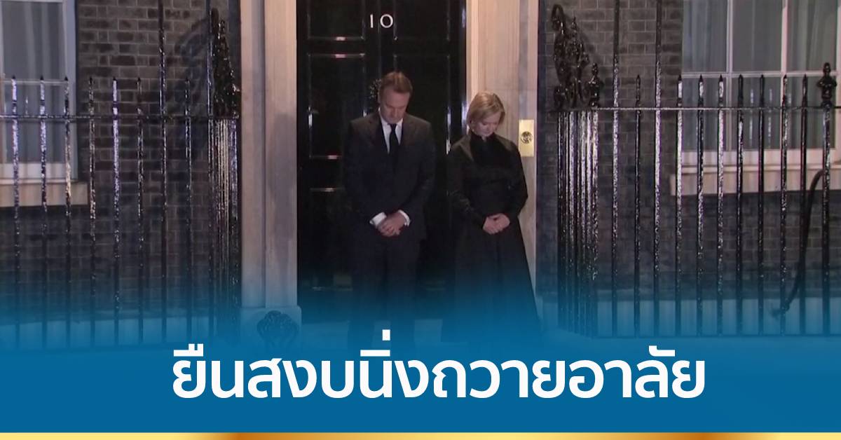 นายกรัฐมนตรี ลิซ ทรัสส์ ของอังกฤษ พร้อมคู่สมรส ร่วมพิธียืนสงบนิ่งถวายอาลัยแด่การเสด็จสวรรคตของสมเด็จพระราชินีนาถเอลิซาเบธที่ 2 ที่บริเวณด้านหน้าทำเนียบนายกรัฐมนตรี ในกรุงลอนดอน ร่วมกับชาวอังกฤษทั่วประเทศ เมื่อเวลา 20.00 น. เมื่อวันอาทิตย์ ตามเวลาท้องถิ่น หรือตรงกับเวลา 02.00 น. เช้าตรู่วันนี้ ตามเวลาในไทย