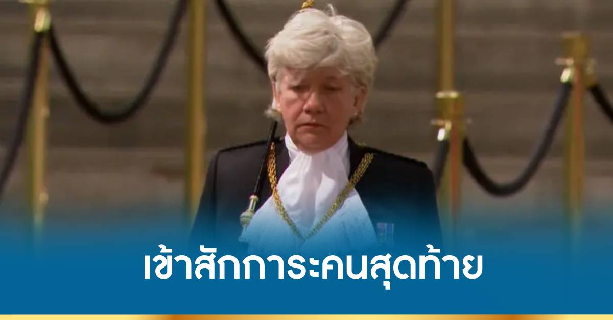 คนกลุ่มสุดท้ายที่เข้าถวายความอาลัยตามหลังสาธารณชนคือ คณะเจ้าพนักงานรัฐสภา และเจ้าพนักงานที่ถวายความอาลัยเป็นคนสุดท้ายคือ ซาราห์ คลาร์ก ผู้เบิกคทาดำ ซึ่งเป็นตำแหน่งที่มีหน้าที่รักษาระเบียบในพื้นที่ของสภาขุนนาง และเบิกตัวสมาชิกสภาสามัญชนไปฟังพระราชดำรัสจากพระราชบัลลังก์ร่วมกับสมาชิกสภาขุนนางในรัฐพิธีเปิดประชุมรัฐสภา คลาร์กวัย 56 ปี เป็นสตรีคนแรกที่ได้ดำรงตำแหน่งนี้ โดยอยู่ในตำแหน่งมาตั้งแต่ปี 2561.-สำนักข่าวไทย