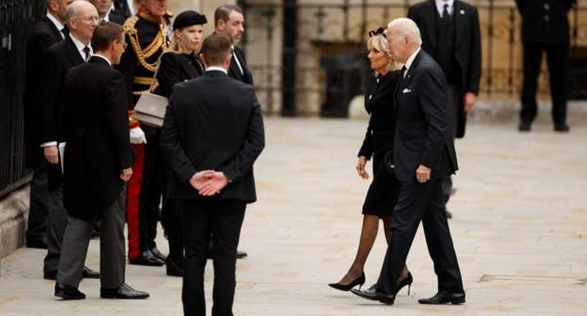 ประธานาธิบดีไบเดนและภริยาเดินทางถึงอังกฤษตั้งแต่วันเสาร์ และเดินทางถึงมหาวิหารเวสต์มินสเตอร์เมื่อเวลา 10:00 น.วันนี้ตามเวลาอังกฤษ ตรงกับเวลา 16:00 น.วันนี้ตามเวลาไทย ทั้งคู่เคยเข้าเฝ้าสมเด็จพระราชินีนาถเอลิซาเบธที่ 2 ที่พระราชวังวินด์เซอร์เมื่อเดือนมิถุนายน 2564 หลังจากไบเดนเสร็จสิ้นการประชุมผู้นำกลุ่มชาติอุตสาหกรรมชั้นนำ 7 ประเทศหรือจี 7 (G7) ที่เทศมณฑลคอร์นวอลล์ของอังกฤษ ครั้งนั้นพระองค์พระราชทานเลี้ยงพระสุธารสชาแก่ไบเดนและภริยา