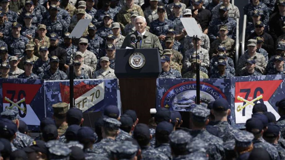 รองประธานาธิบดีเพนซ์กล่าวระหว่างเยี่ยมชมเรือยูเอสเอส โรนัลด์ เรแกน เรือบรรทุกเครื่องบินขนาดใหญ่ที่ใช้พลังงานนิวเคลียร์ ซึ่งประจำการอยู่ที่เมืองท่าโยโกสุกะในญี่ปุ่น เขาบอกว่าสหรัฐจะปกป้องเสรีภาพในการเดินเรือและการใช้เส้นทางบินข้ามทะเลจีนใต้ ขณะที่ทางการจีนอ้างอธิปไตยเหนือน่านน้ำท่ามกลางความขัดแย้งกับหลายประเทศในเอเชียตะวันออกเฉียงใต้ที่อ้างสิทธิครอบครองเช่นกัน รองประธานาธิบดีเพนซ์กล่าวระหว่างการเยือนญี่ปุ่นว่า สหรัฐจะยังคงยึดมั่นตามแนวทางประจำการในเอเชีย-แปซิฟิก และญี่ปุ่นจะได้เห็นว่าสหรัฐดำเนินบทบาทและความรับผิดชอบมากขึ้นกับประเทศพันธมิตรในช่วงเวลานับจากนี้ หลังจากที่เกาหลีเหนือทดสอบขีปนาวุธและนิวเคลียร์หลายครั้งช่วงที่ผ่านมา .-สำนักข่าวไทย