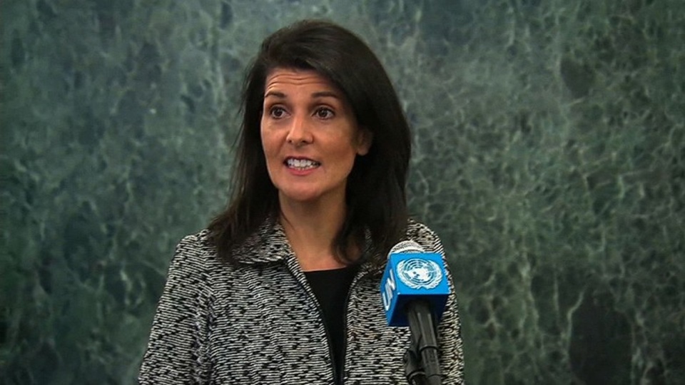 สหประชาชาติ 19 เม.ย. – นางนิกกี แฮลีย์ เอกอัครราชทูตสหรัฐประจำสหประชาชาติกล่าวว่า การละเมิดสิทธิมนุษยชนทำให้เกิดความขัดแย้งในซีเรีย ความรุนแรงในบุรุนดี และนำไปสู่การปราบปรามในเมียนมาร์ ซึ่งวิกฤตโลกในอนาคตอาจเกิดขึ้นจากเกาหลีเหนือ อิหร่าน หรือคิวบาที่มีการละเมิดสิทธิมนุษยชนอย่างกว้างขวาง