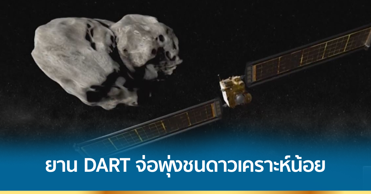 ยานสำรวจที่มีชื่อว่า “ดาร์ต” (Double Asteroid Redirection Test-DART) ซึ่งถูกส่งขึ้นสู่อวกาศตั้งแต่เดือนพฤศจิกายนปีที่แล้ว เตรียมพุ่งเข้าหาดาวเคราะห์น้อยที่มีชื่อว่า ไดมอร์ฟัส (Dimorphos) วันพรุ่งนี้ ด้วยความเร็ว 22,500 กิโลเมตรต่อชั่วโมง แรงปะทะดังกล่าวน่าจะทำให้ดาวเคราะห์น้อยไดมอร์ฟัสเปลี่ยนวงโคจรได้เล็กน้อย ขณะที่กล้องบนยานจะถ่ายภาพเป้าหมายไปด้วย เพื่อบันทึกสภาพของพื้นที่ที่จะพุ่งชน อย่างไรก็ตาม ต้องใช้เวลาหลายวัน หรืออาจหลายสัปดาห์ กว่าที่จะรู้ว่าดาวเคราะห์น้อยที่ถูกชนเปลี่ยนวงโคจรได้จริงหรือไม่
